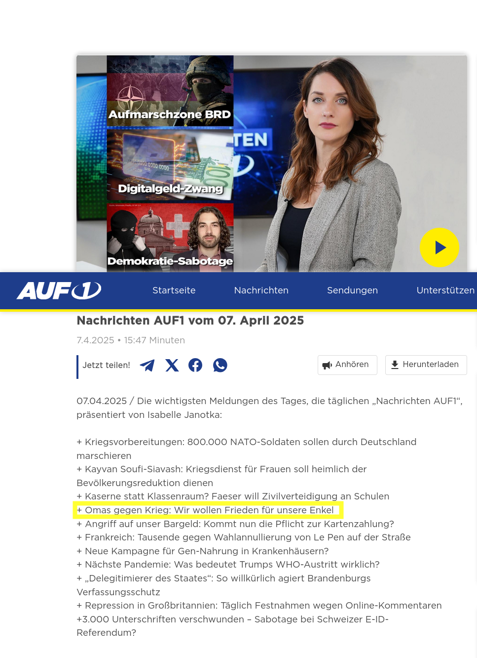 AUF1 berichtet in den Nachrichten vom 7. April 2025